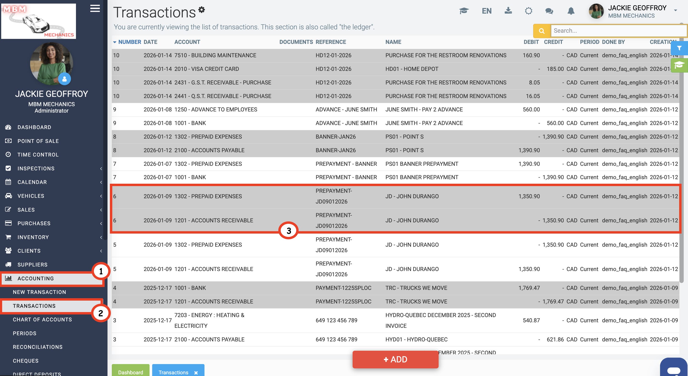 To check your transactions, click on Accounting > Transactions.