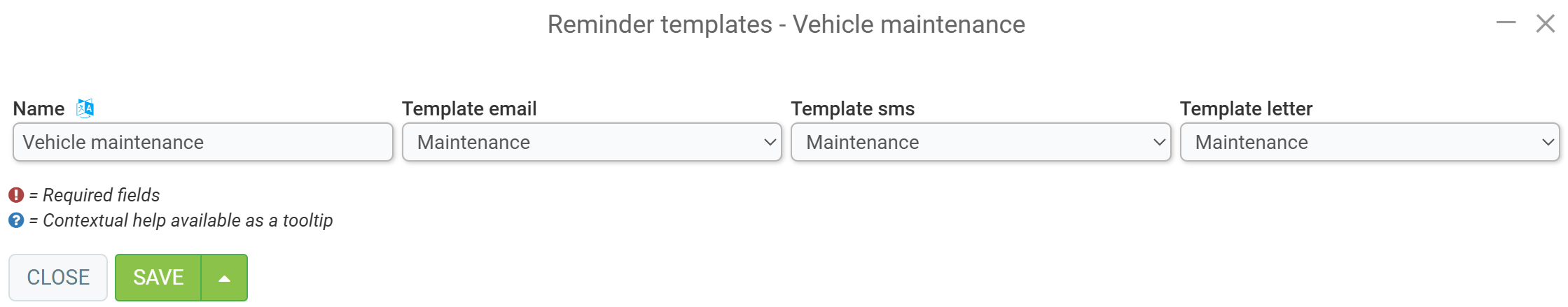 - Template SMS;