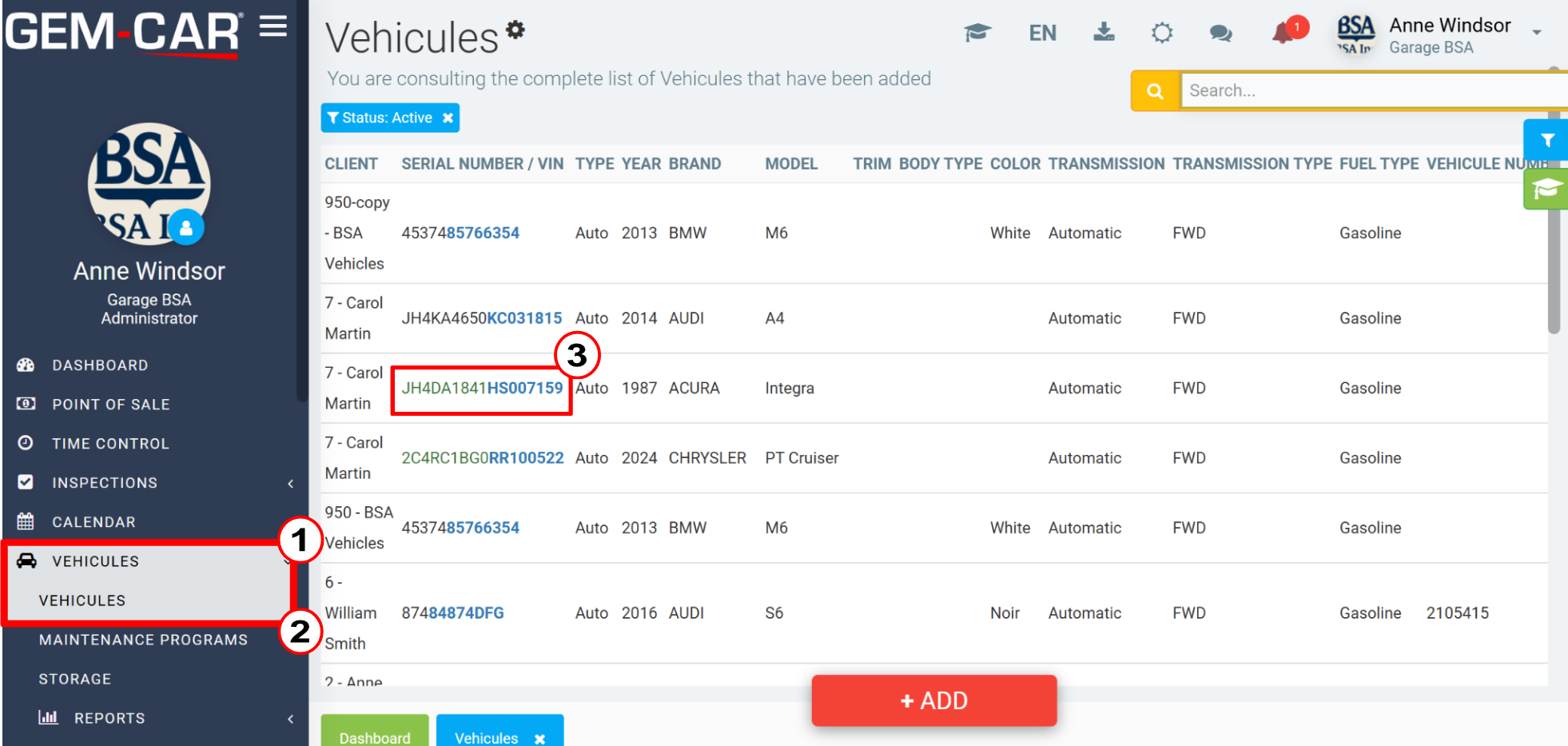 Click on Add to add a note to the vehicle file.