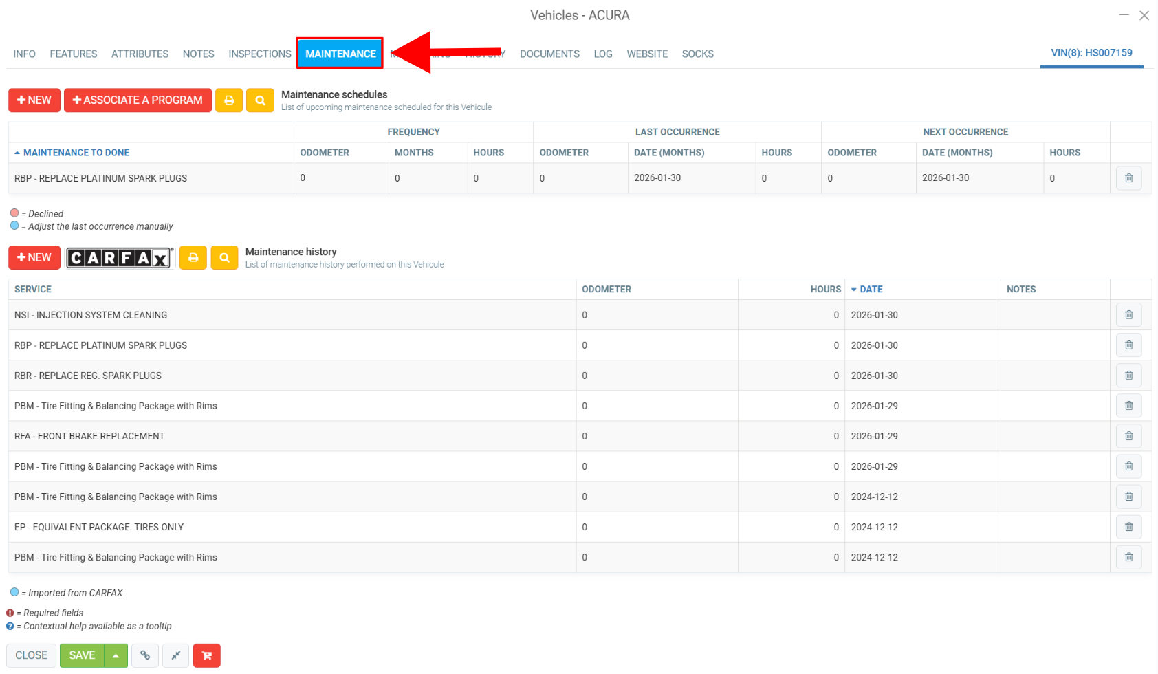 Then click on the Maintenance tab. In this tab, you can check the maintenance schedules and maintenance history for the vehicle.