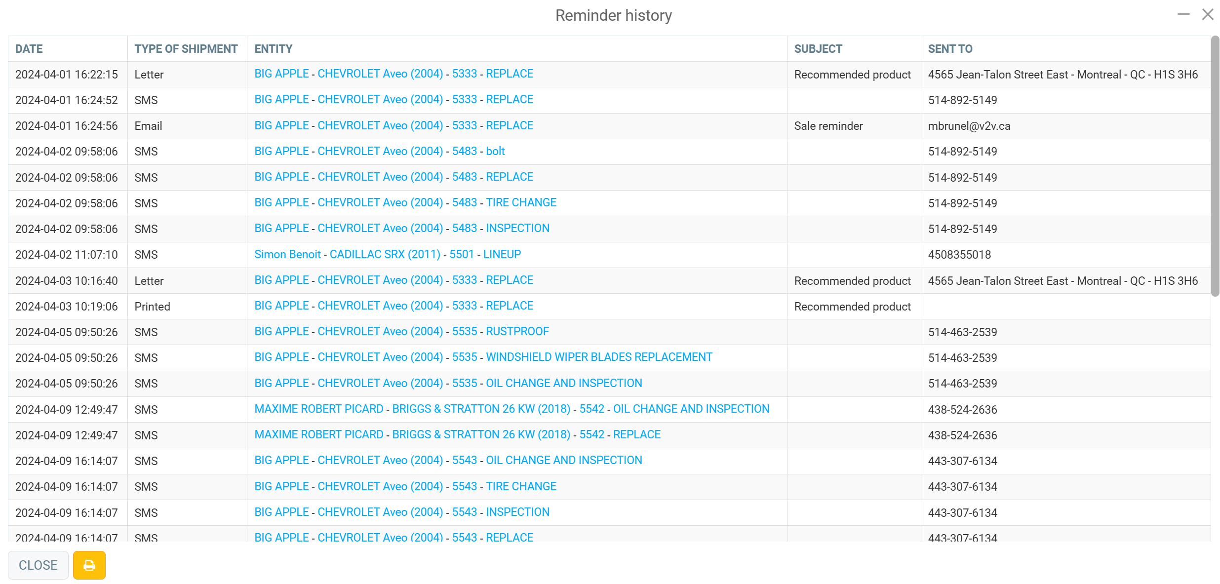 When the button is blue, the vehicle has reminders on file. When the button is yellow, it indicates that the sale has a note with a reminder's date. See below for instructions on how to add this note to the vehicle file.